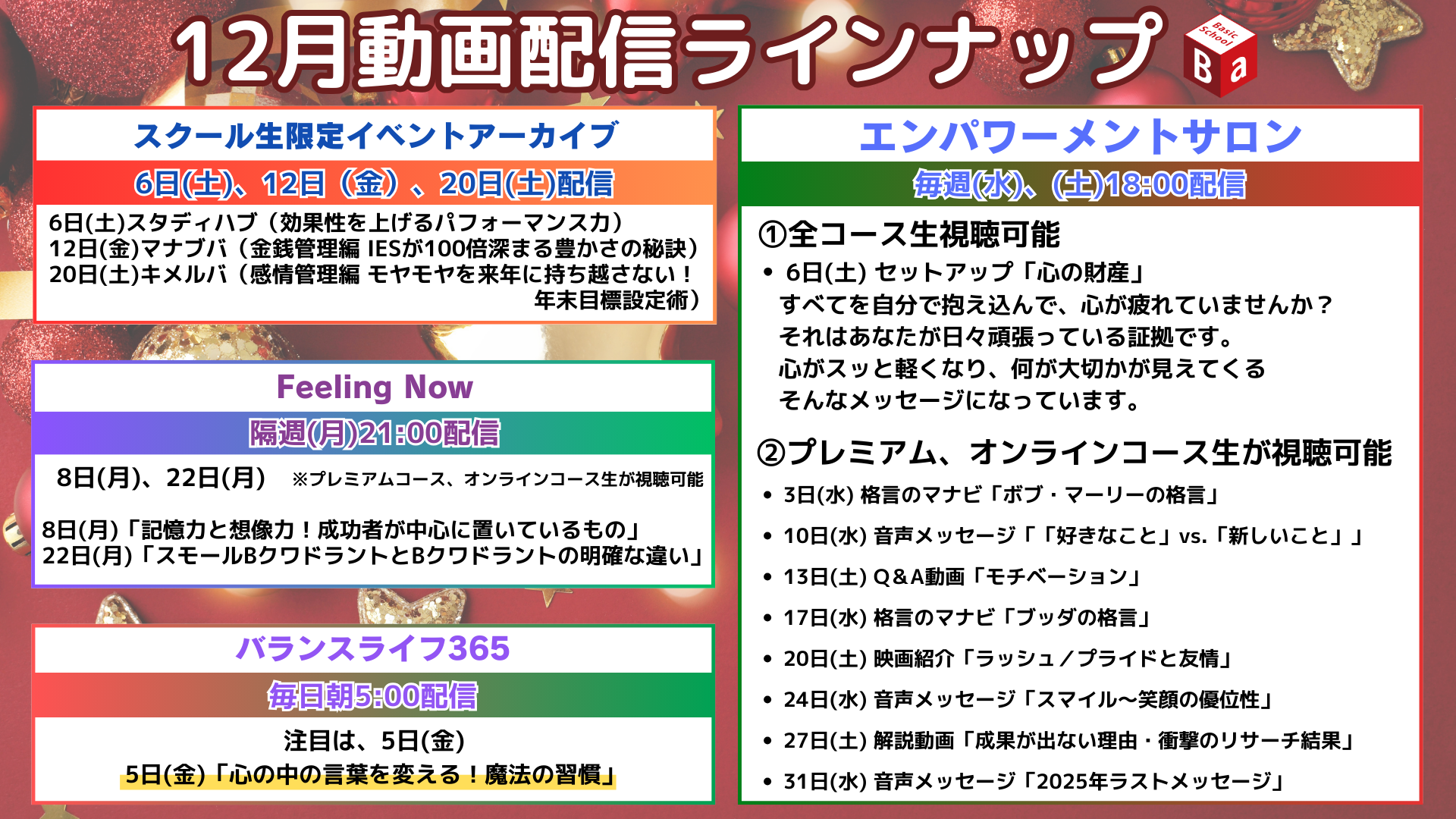 20日(土)キメルバ(感情管理編 モヤモヤを来年に持ち越さない!年末目標設定術)