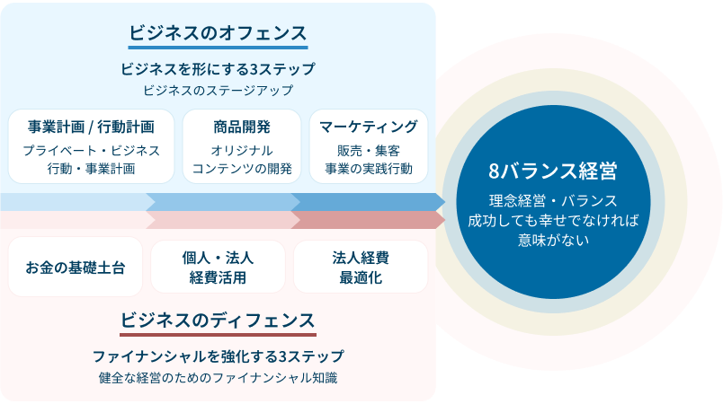 経済・時間・人間関係・健康など、ビジネスと人生の両方を豊かにする“8つの領域”を学ぶ実践講座。