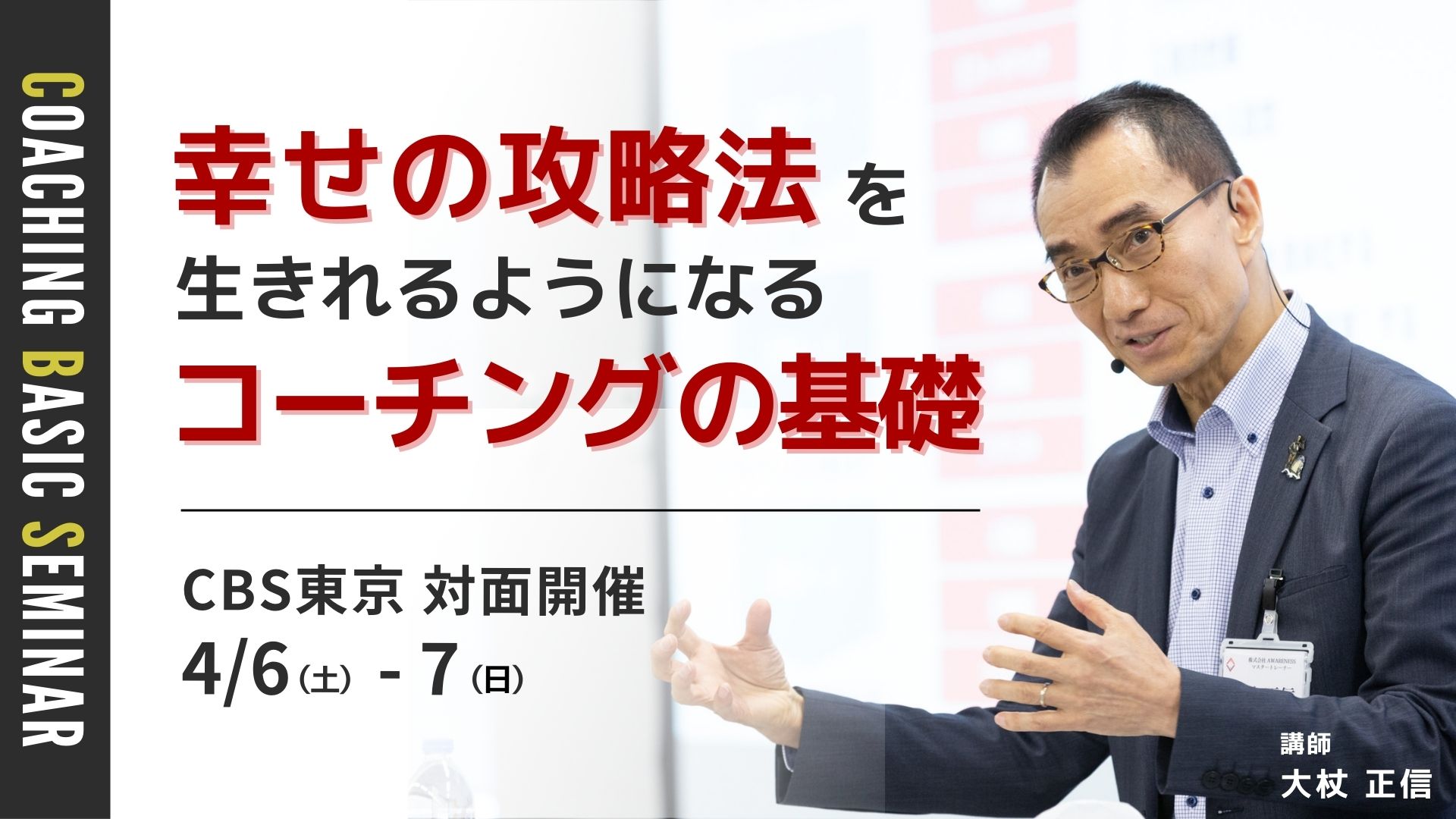 コーチングの基礎スキルを徹底的に学べる2日間のセミナーです。