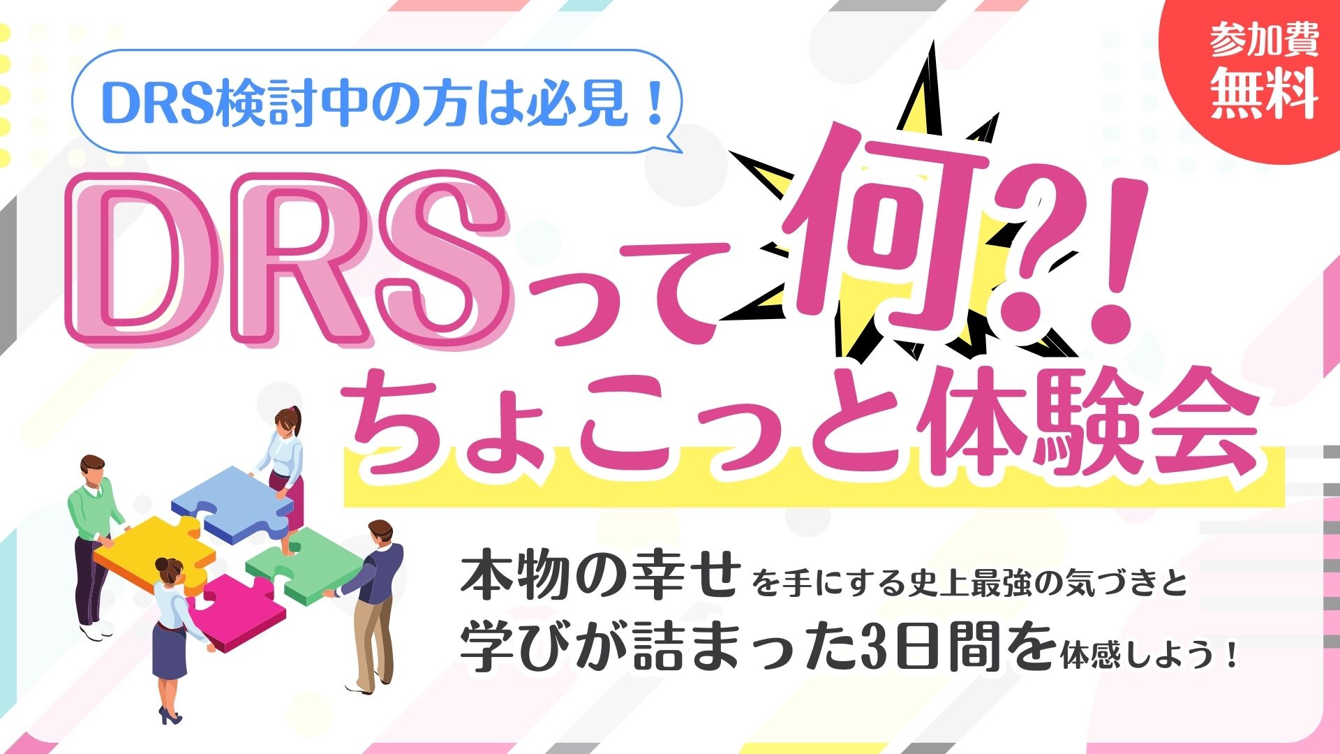 DRSをご検討中の方も、既に申込みされている方にとっても、新たな気づきを得て次への一歩を踏み出す時間になるでしょう。