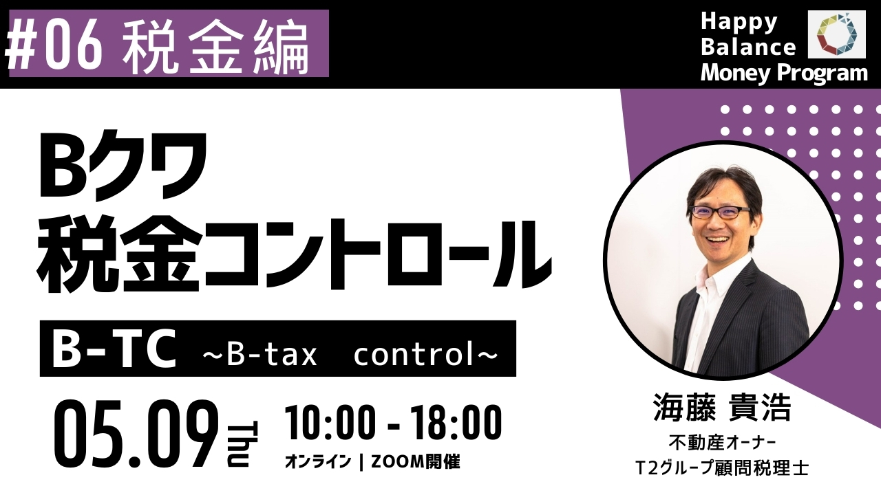 【zoom】マネープログラム IQ実践セミナー(税金編#6 BーTC Bクワ税金コントロール)
