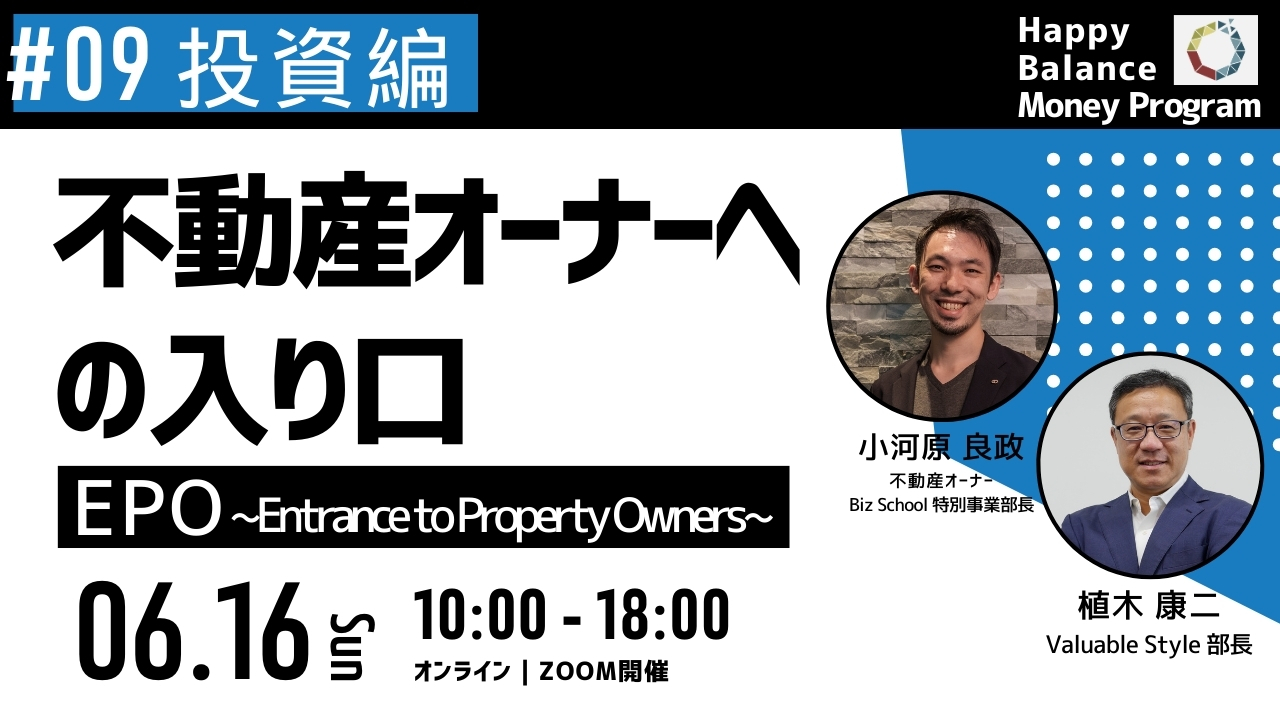 【zoom】マネープログラム IQ実践セミナー(投資編#9 EPO 不動産オーナーへの入り口)