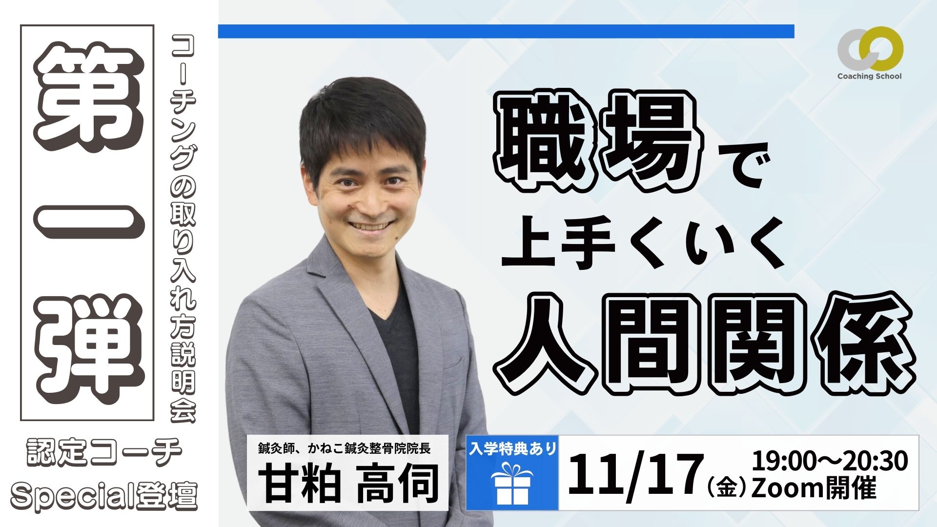 【zoom開催】甘粕コーチが解説! 職場で上手くいく人間関係 ~コーチング説明会付き~