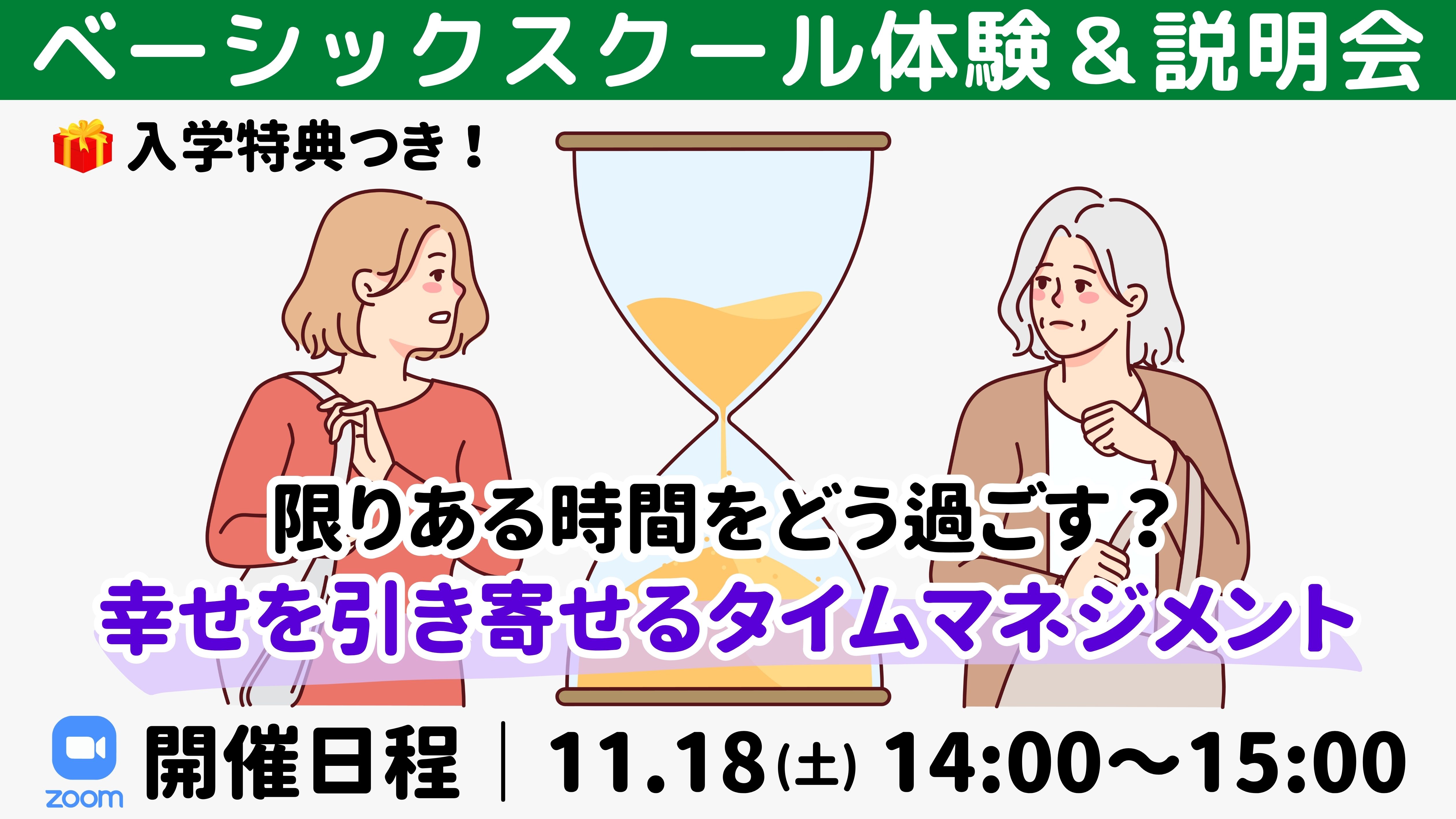 【ベーシックスクール体験&説明会】限りある時間をどう過ごす? 幸せを引き寄せるタイムマネジメント