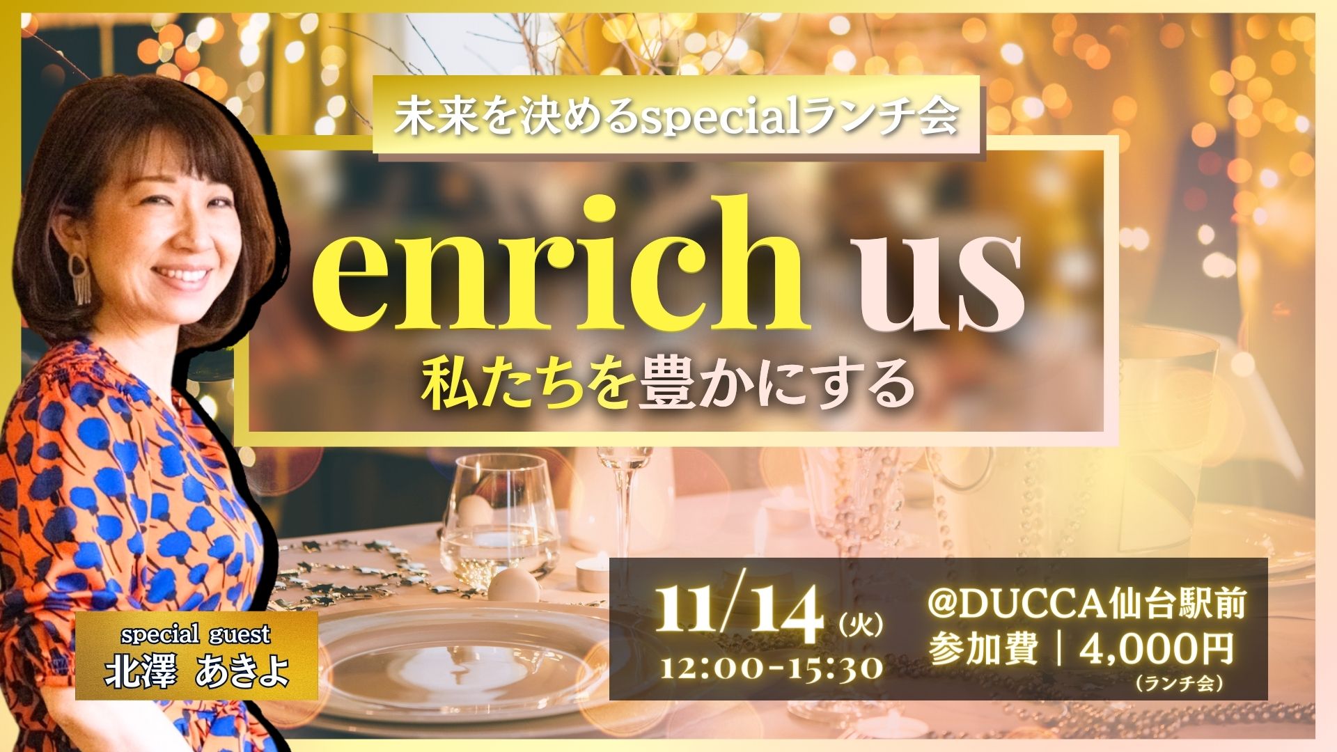 【対面】enrich us(私たちを豊かにする)-未来を決めるspecialランチ会-