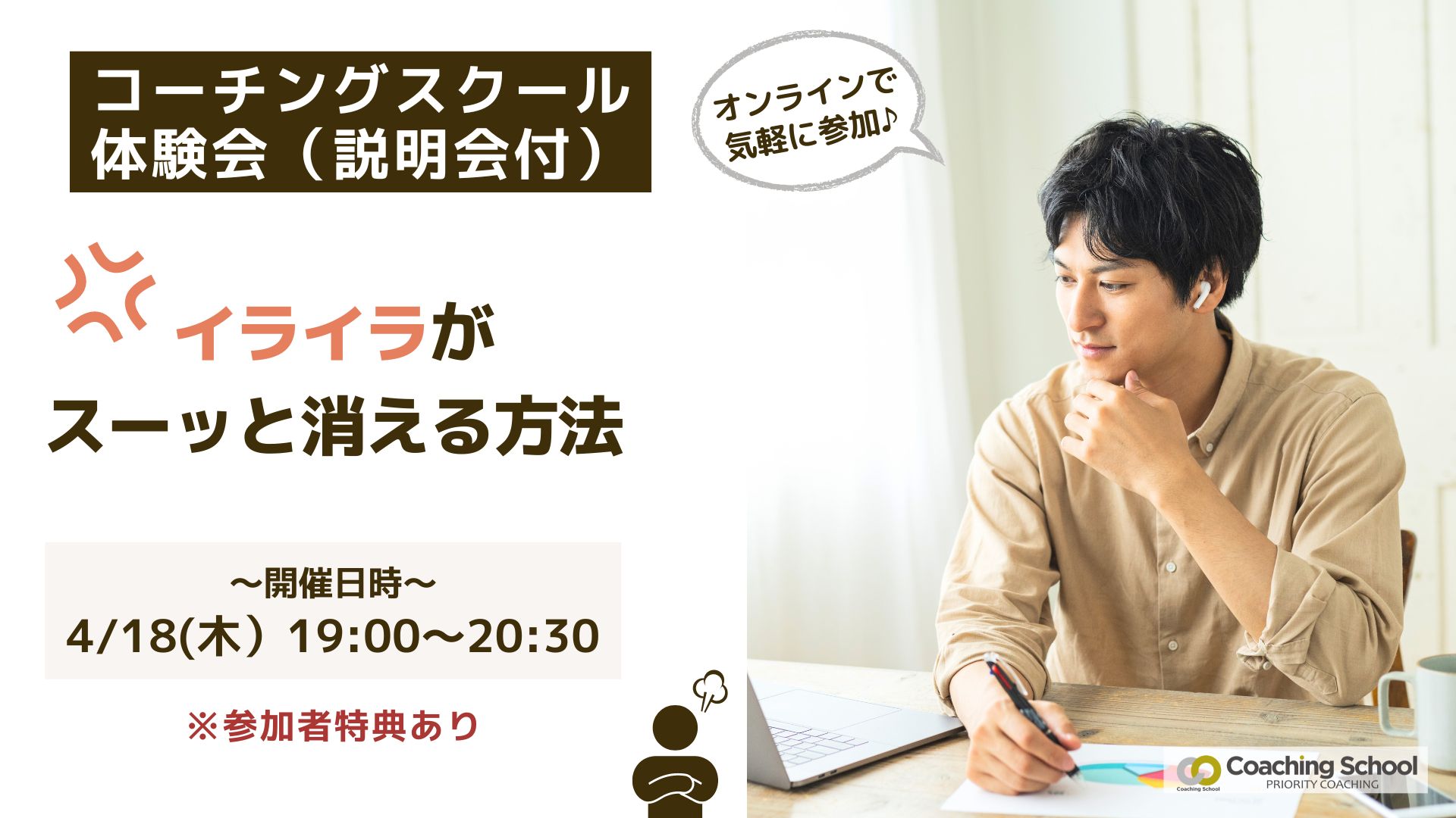 【zoom】「イライラが、スーッと消える方法とは?」(夜開催)