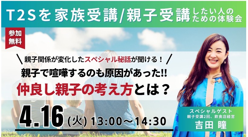 【zoom】家族受講・親子受講したい人のためのT2S体験&説明会