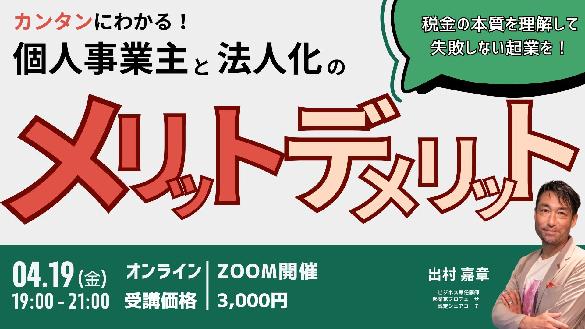 【zoom】カンタンにわかる!個人事業主と法人化のメリットデメリット