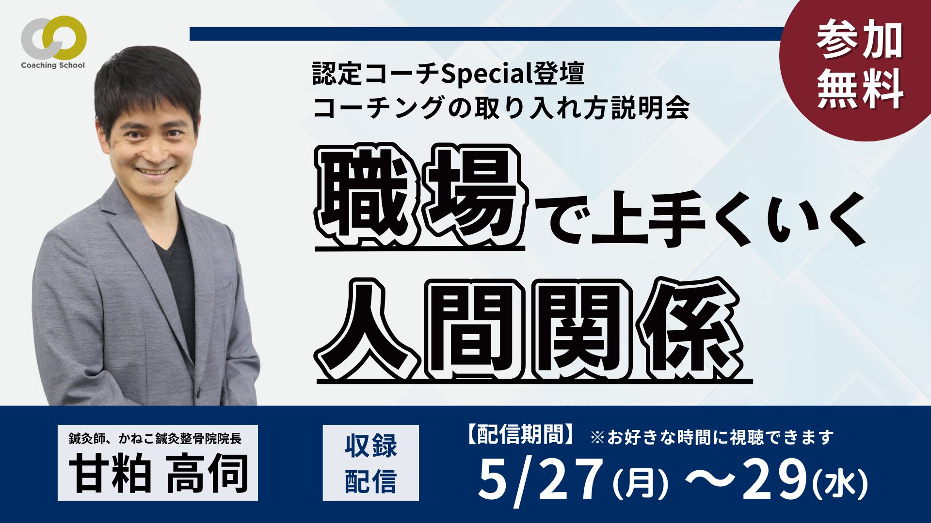 【収録配信】甘粕コーチが解説! 職場で上手くいく人間関係 (コーチング説明会付き)