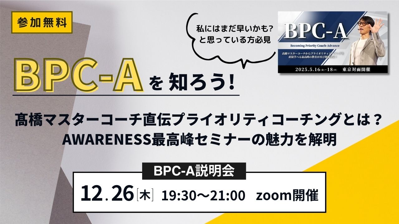 【zoom】BPC-Aを知ろう!AWARENESS最高峰セミナーの魅力を解明(BPC-A説明会)