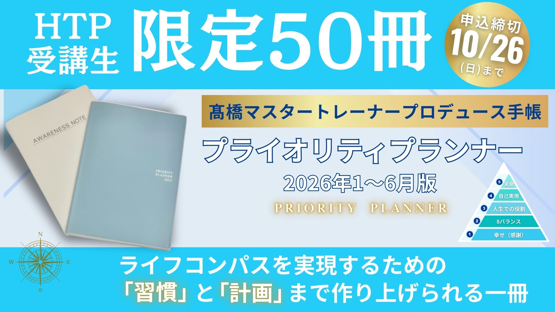 【HTP受講生限定50冊】PRIORITY PLANNER(手帳)注文(2026年1月始まり~2026年6月終わり)