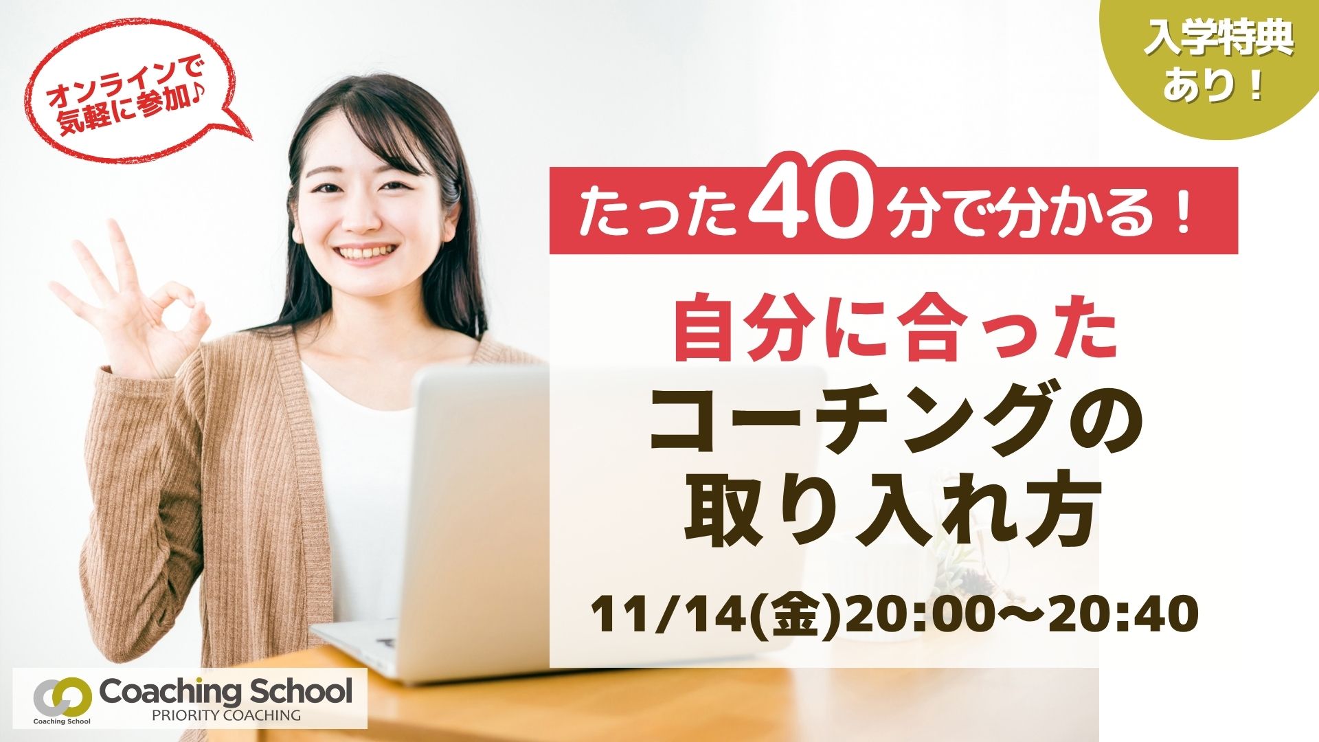 【zoom】40分で分かる!自分に合ったコーチングの取り入れ方(コーチングスクール体験会)
