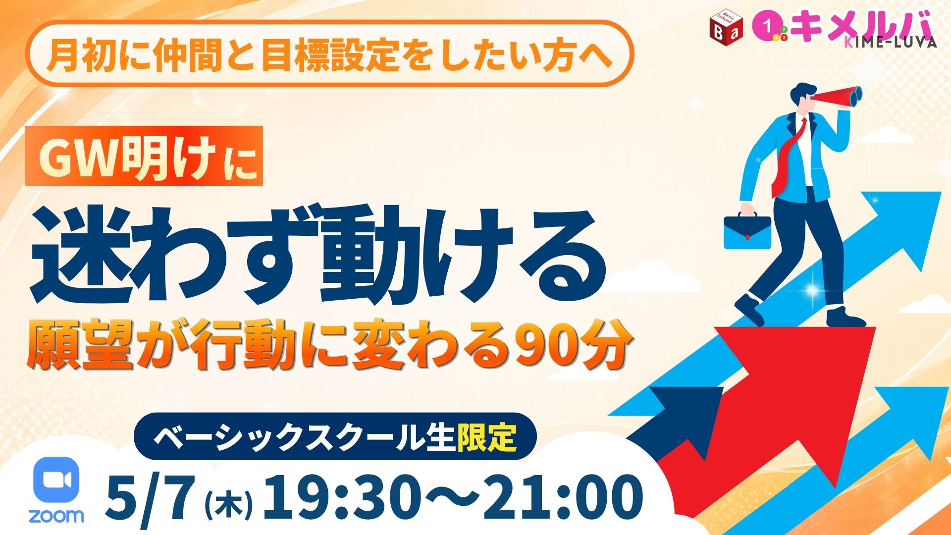 【zoom】GW明けに迷わず動ける 願望が行動に変わる90分 キメルバ
