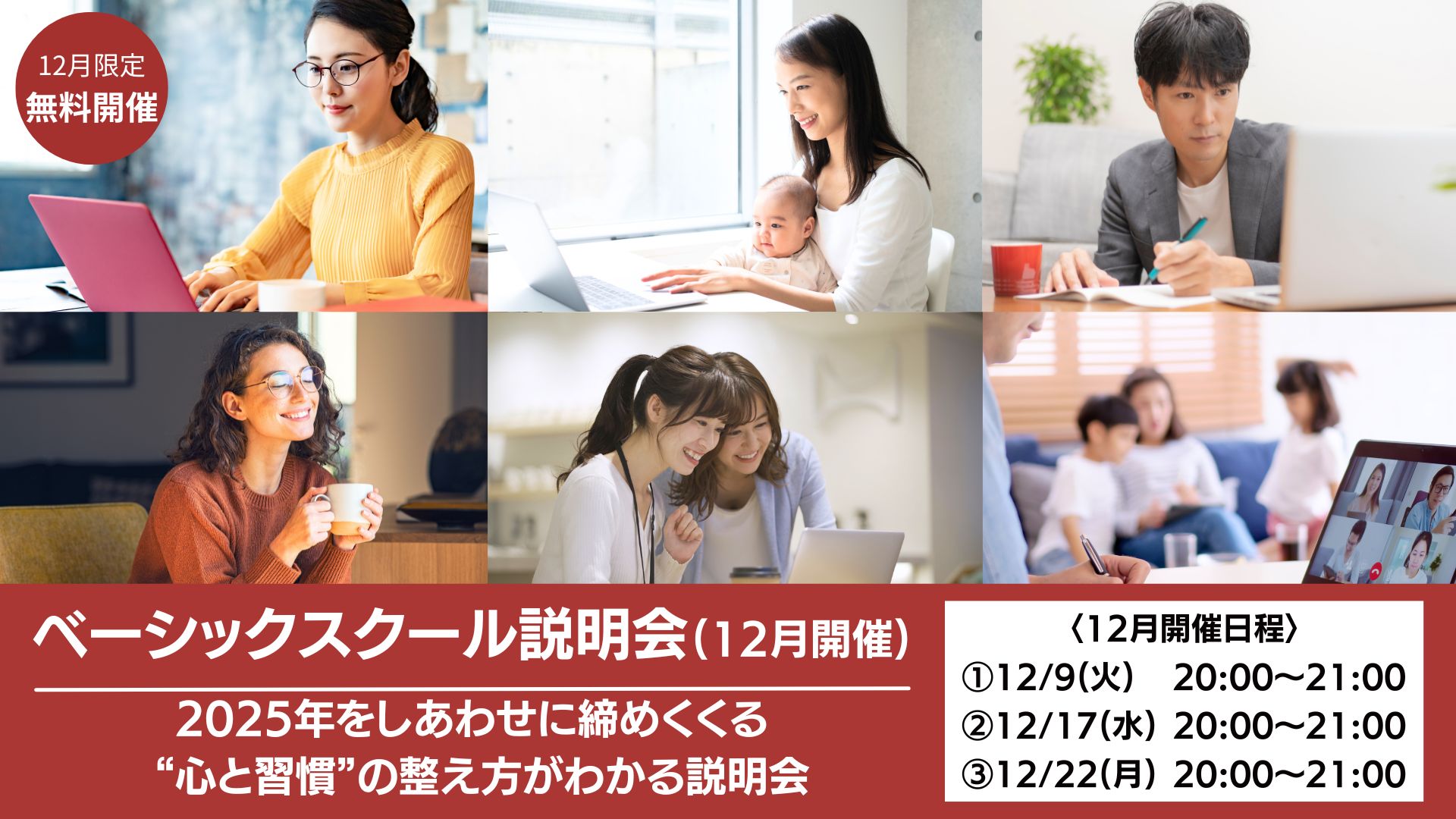 【12月開催】ベーシックスクール説明会 2025年をしあわせに締めくくる心と習慣の整え方(zoom)