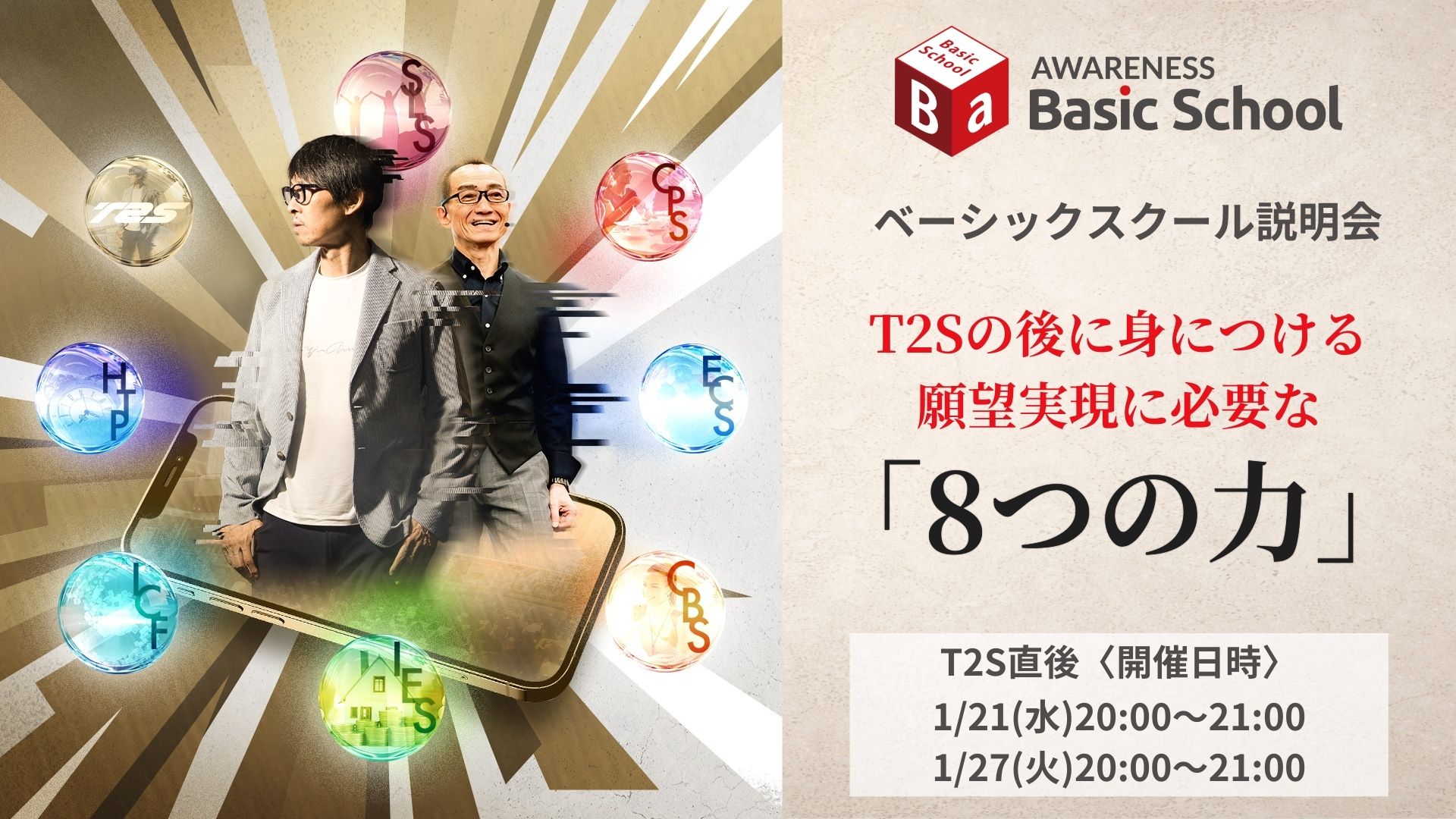 T2Sの後に身につける、 願望実現に必要な「8つの力」 ~ベーシックスクール説明会~(zoom)