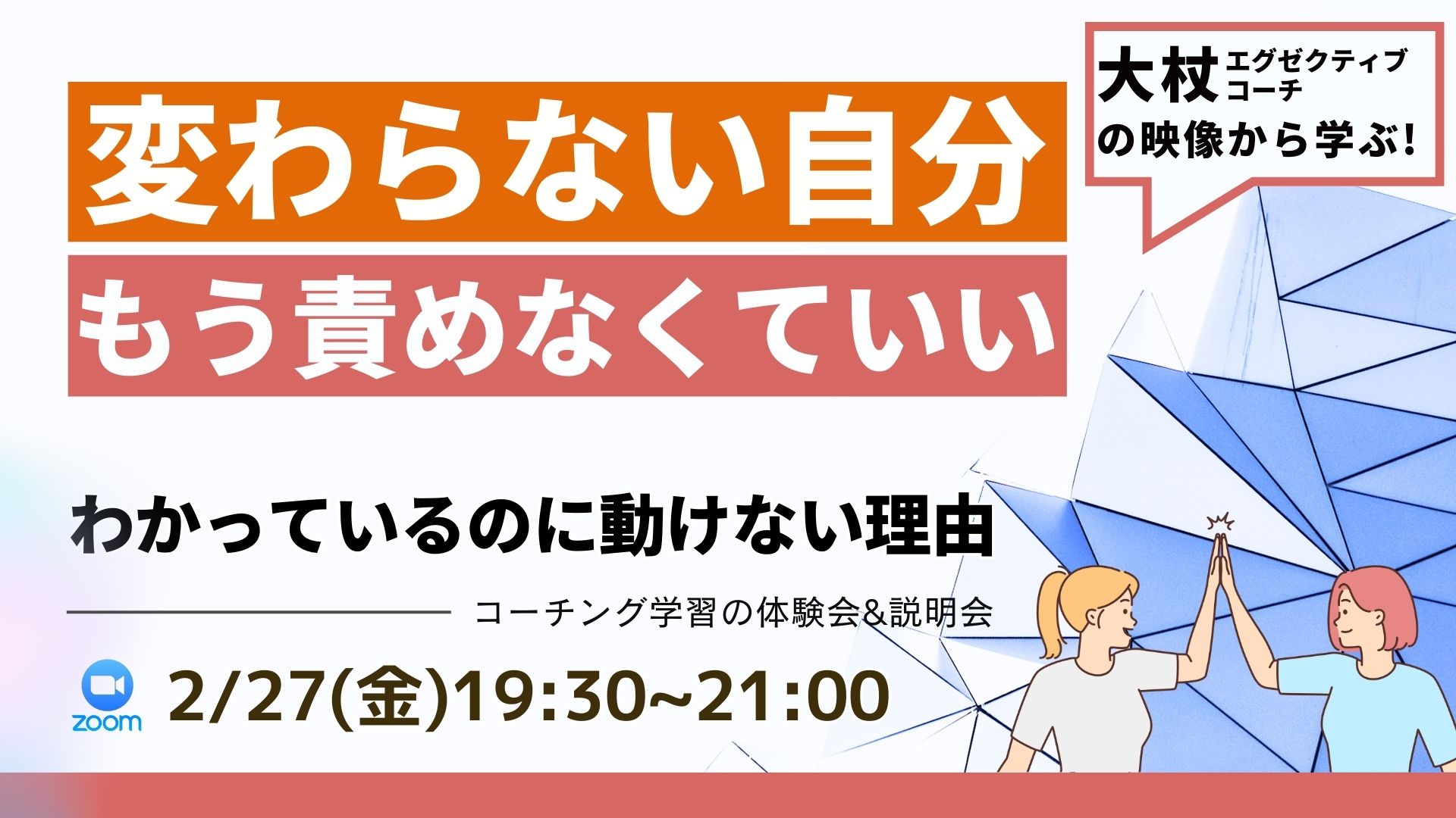 【zoom】もう責めなくていいとわかっているのに動けない理由(コーチングスクール体験&説明会)