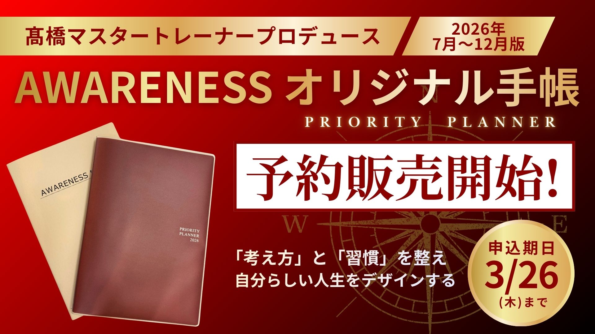 PRIORITY PLANNER(手帳)注文(2026年7月始まり~2026年12月終わり)