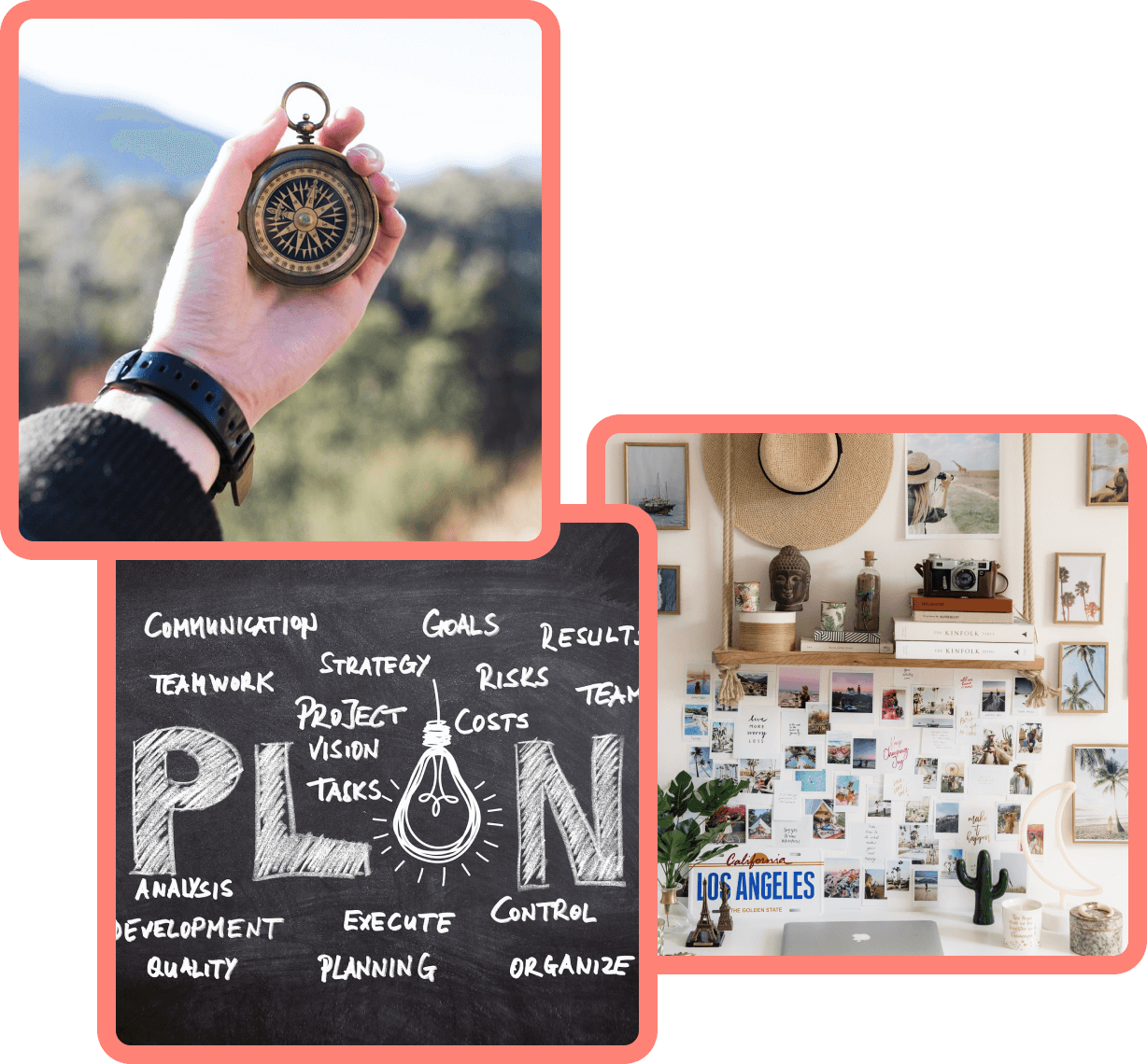 ①人生のコンパス(方向)を明確にする ②心から手にしたいと思う未来をビジョン化させる ③行動変容させるために具体的な計画を立てる